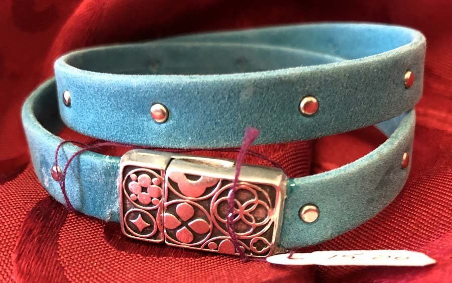 Blue Suded Leather 10mm Double with magnetic clasmp