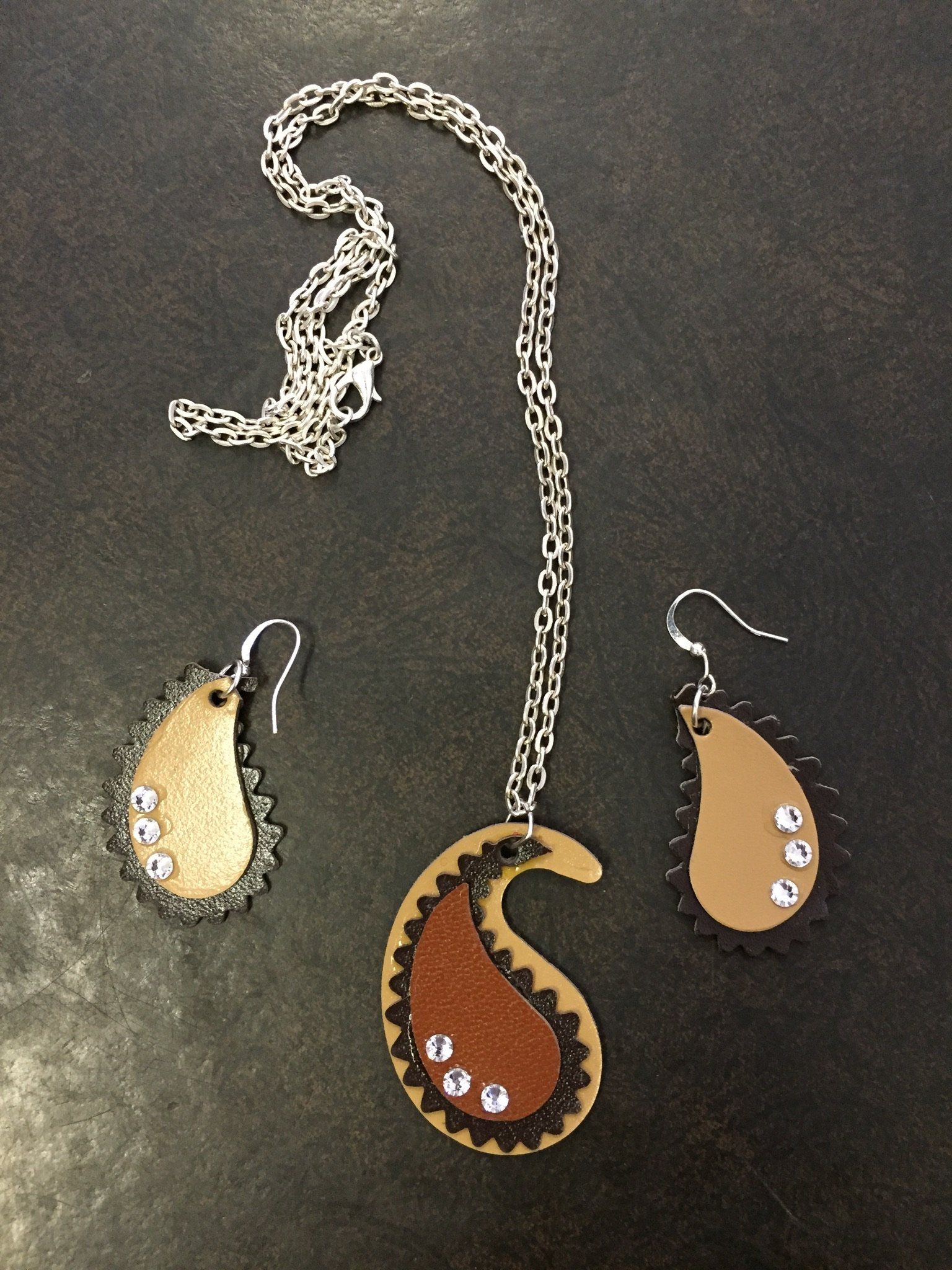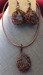Blue Leather & Silver Knitted Wire Necklace & Earrings